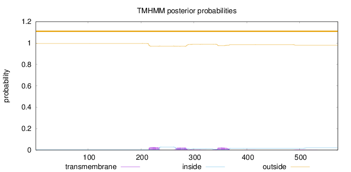 outside 1 - 19 TMhelix 20 - 39 inside 40 - 102 TMhelix 103 - 125 outside 126 - 129 TMhelix 130 - 152 inside 153 - 418 TMhelix 419 - 441 outside 442 - 444 TMhelix 445 - 467 inside 468 - 520 |