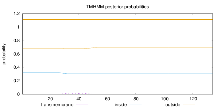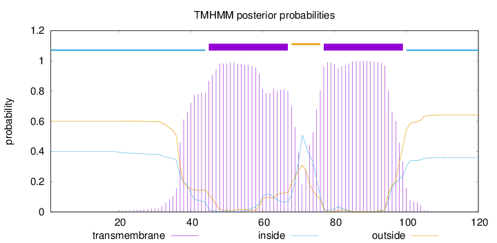 inside 1 - 44 TMhelix 45 - 67 outside 68 - 76 TMhelix 77 - 99 inside 100 - 120 |