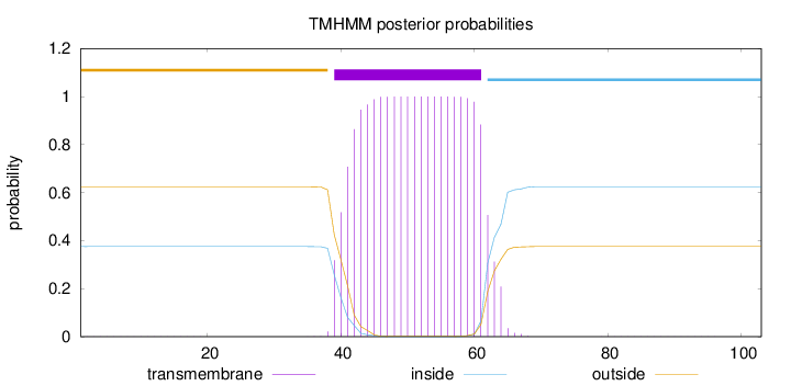 outside 1 - 38 TMhelix 39 - 61 inside 62 - 103 |