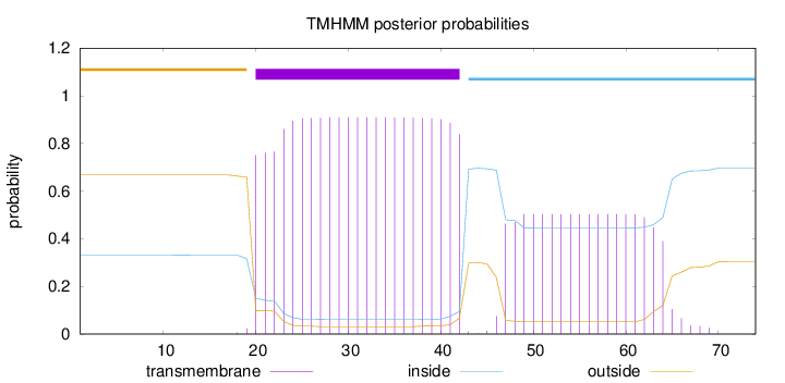 outside 1 - 19 TMhelix 20 - 42 inside 43 - 74 |