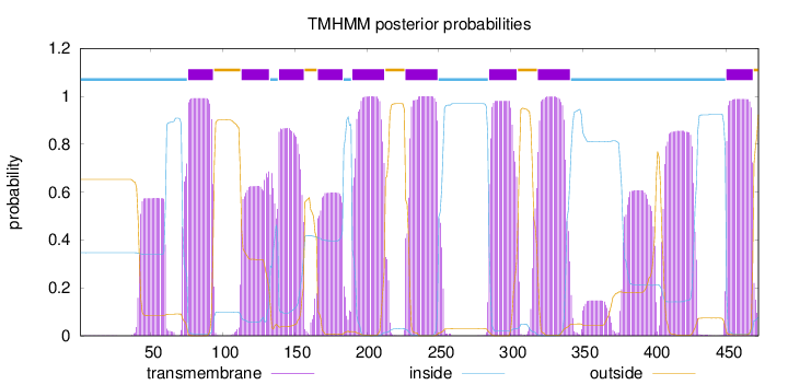 inside 1 - 75 TMhelix 76 - 93 outside 94 - 112 TMhelix 113 - 132 inside 133 - 138 TMhelix 139 - 156 outside 157 - 165 TMhelix 166 - 183 inside 184 - 189 TMhelix 190 - 212 outside 213 - 226 TMhelix 227 - 249 inside 250 - 284 TMhelix 285 - 304 outside 305 - 318 TMhelix 319 - 341 inside 342 - 449 TMhelix 450 - 468 outside 469 - 472 |