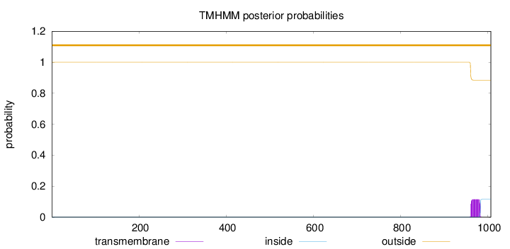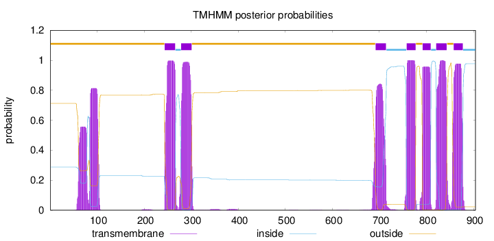 outside 1 - 243 TMhelix 244 - 266 inside 267 - 278 TMhelix 279 - 301 outside 302 - 691 TMhelix 692 - 714 inside 715 - 757 TMhelix 758 - 777 outside 778 - 791 TMhelix 792 - 809 inside 810 - 820 TMhelix 821 - 843 outside 844 - 857 TMhelix 858 - 877 inside 878 - 904 |