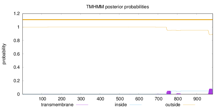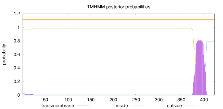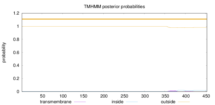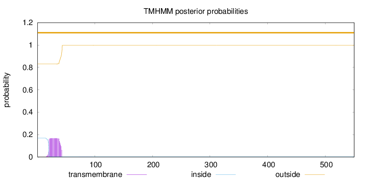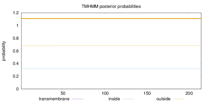 inside 1 - 4 TMhelix 5 - 27 outside 28 - 103 TMhelix 104 - 126 inside 127 - 186 TMhelix 187 - 209 outside 210 - 245 TMhelix 246 - 268 inside 269 - 279 |