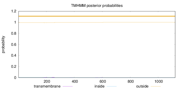 outside 1 - 625 TMhelix 626 - 648 inside 649 - 668 TMhelix 669 - 688 outside 689 - 702 TMhelix 703 - 722 inside 723 - 816 TMhelix 817 - 834 outside 835 - 888 TMhelix 889 - 911 inside 912 - 1056 |