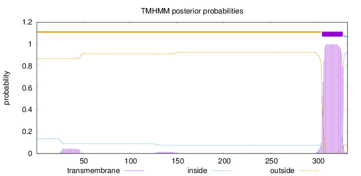 outside 1 - 304 TMhelix 305 - 327 inside 328 - 332 |