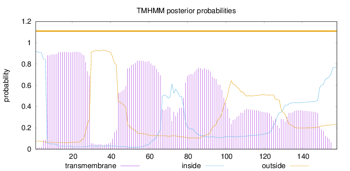 inside 1 - 4 TMhelix 5 - 27 outside 28 - 41 TMhelix 42 - 64 inside 65 - 124 |