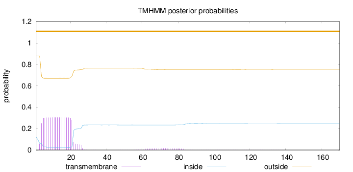 inside 1 - 19 TMhelix 20 - 42 outside 43 - 153 |