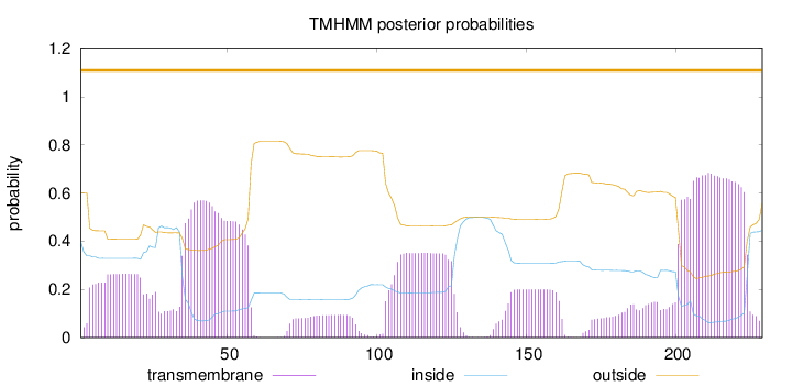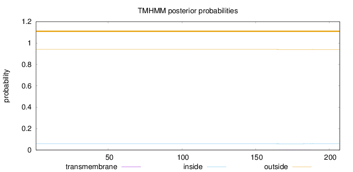 inside 1 - 27 TMhelix 28 - 45 outside 46 - 54 TMhelix 55 - 77 inside 78 - 83 TMhelix 84 - 106 outside 107 - 133 TMhelix 134 - 156 inside 157 - 245 |