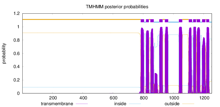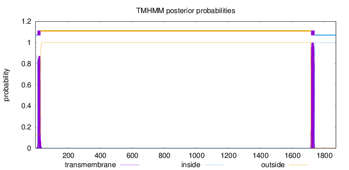 inside 1 - 12 TMhelix 13 - 31 outside 32 - 1722 TMhelix 1723 - 1745 inside 1746 - 1878 |
