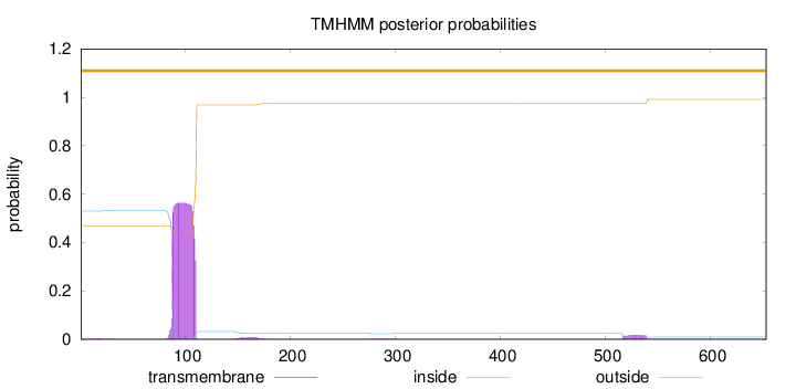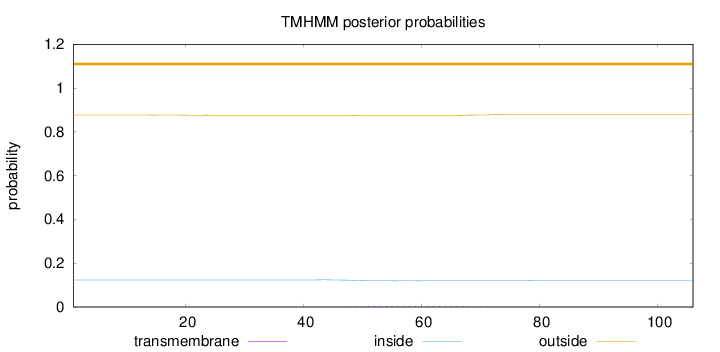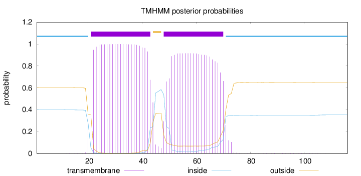 inside 1 - 20 TMhelix 21 - 43 outside 44 - 47 TMhelix 48 - 70 inside 71 - 116 |