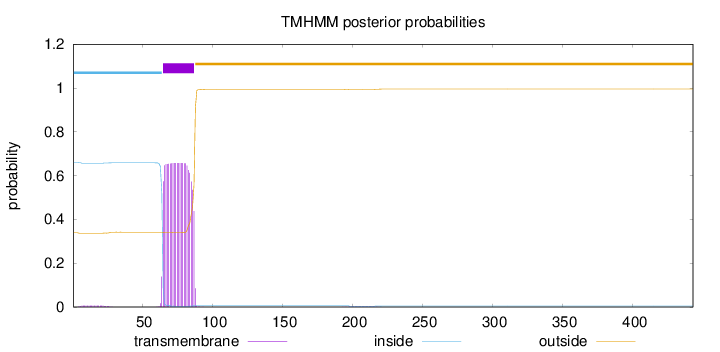 inside 1 - 64 TMhelix 65 - 87 outside 88 - 443 |