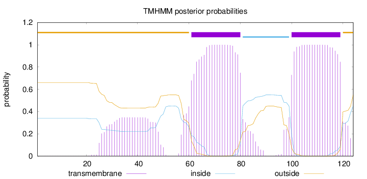 outside 1 - 60 TMhelix 61 - 80 inside 81 - 99 TMhelix 100 - 119 outside 120 - 124 |