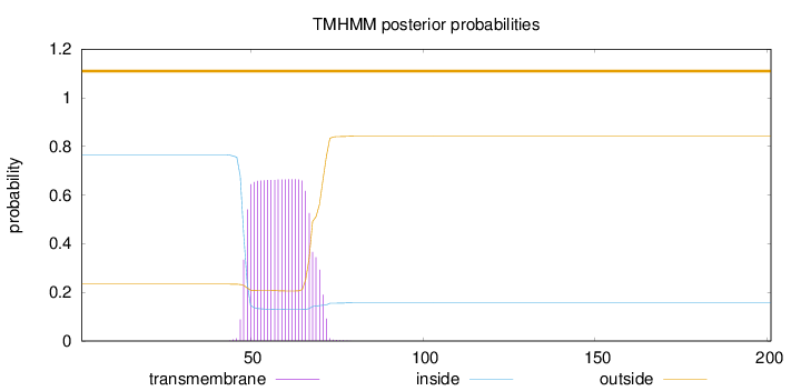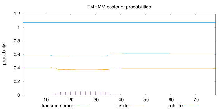 outside 1 - 9 TMhelix 10 - 29 inside 30 - 77 TMhelix 78 - 100 outside 101 - 156 TMhelix 157 - 179 inside 180 - 197 TMhelix 198 - 220 outside 221 - 244 |