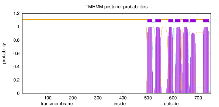 outside 1 - 499 TMhelix 500 - 519 inside 520 - 531 TMhelix 532 - 554 outside 555 - 583 TMhelix 584 - 603 inside 604 - 609 TMhelix 610 - 632 outside 633 - 641 TMhelix 642 - 664 inside 665 - 670 TMhelix 671 - 693 outside 694 - 722 TMhelix 723 - 745 inside 746 - 753 |