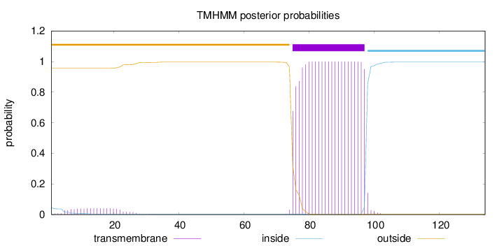 outside 1 - 74 TMhelix 75 - 97 inside 98 - 134 |