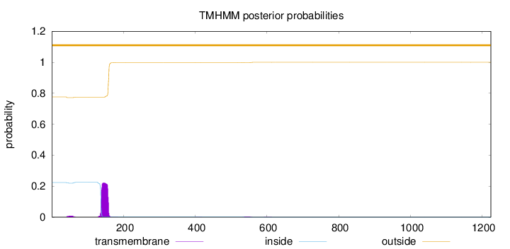 outside 1 - 96 TMhelix 97 - 119 inside 120 - 125 TMhelix 126 - 148 outside 149 - 1177 |